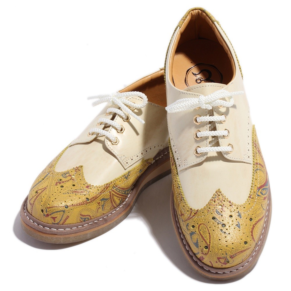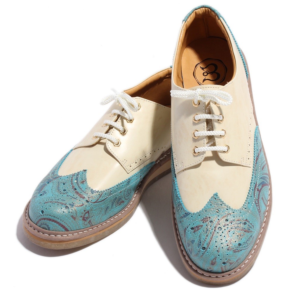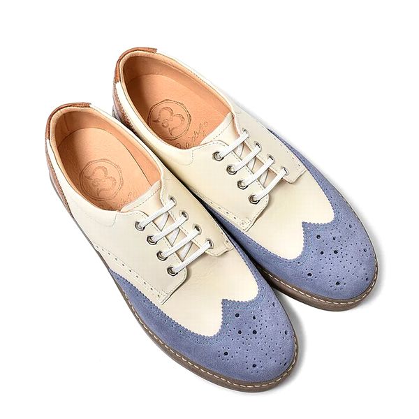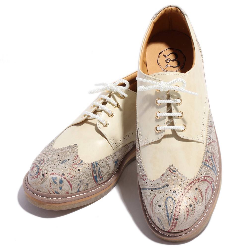 【BajoLugo/バジョルゴ】 ウィングチップ レザー スニーカー ラベンダー × オフホワイト × ライトブラウン