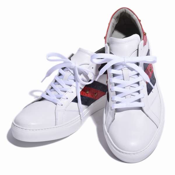 クロコダイル型押しホワイトラインレッド×スムースホワイト