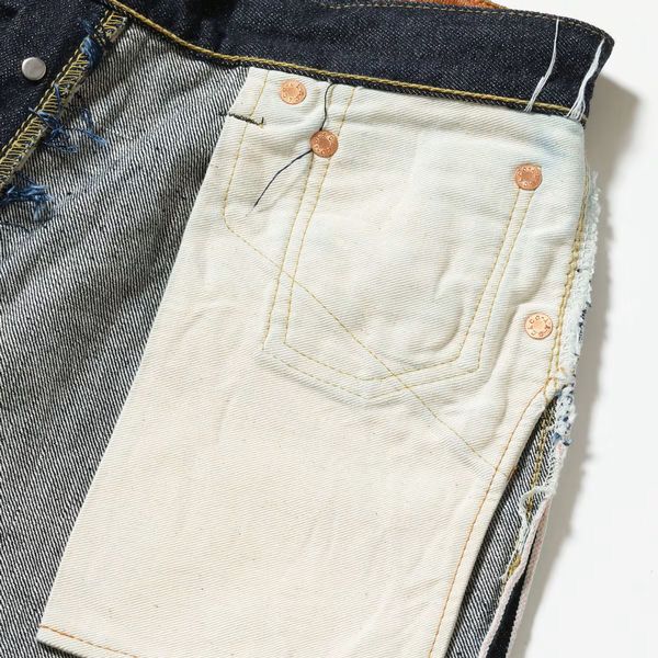 | 今回のモデルは、1936年モデルのデニムブラウスと同じ時代のウエストオーバーオールズをベースに、腿から裾までをワークパンツのように太めにアレンジした「2025年モデル」。当時はウエストにサスペンダー用ボタンやシンチバックが付けられるが、シュガーケーンオリジナルの仕様として本作では排除している。しかし股リベットや後中心の巻き縫いの方向(右高)は戦前モデルの仕様を踏襲。生地は前項のデニムブラウス同様に未熟な紡績のムラ糸を再現しており、荒々しい色落ちやエイジングに期待できる。このモデルには新たに製作したグリーンのフラッシャーが付けられる。 STANDARD DENIM(スタンダードデニム) 紡績、染色、織り、縫製の全工程にこだわってヴィンテージデニムを再現した結果、 多くの人々に長年愛用され、定番として作り続けられる名作。これこそが真の“STANDARD”である。 ■カラー/ワンウォッシュ(421A) ■素材表地/ コットン100% ■生産国/MADE IN JAPAN(日本製) 421A) ONE WASH ■32inch /ウエスト81cm 前股上32cm 後股上40cm 股下86.5cm ワタリ34.5cm 裾幅24.5cm (多少前後します)(多少前後します) ■33inch /ウエスト83cm 前股上33cm 後股上41cm 股下86.5cm ワタリ35cm 裾幅25cm (多少前後します)(多少前後します) ■34inch /ウエスト85cm 前股上33cm 後股上41.5cm 股下86.5cm ワタリ36cm 裾幅225.5m (多少前後します)(多少前後します) ■36inch /ウエスト90cm 前股上34cm 後股上42.5cm 股下86.5cm ワタリ37cm 裾幅25.5cm (多少前後します) ※サイズは多少の誤差はご容赦ください。 ※モニターによって色の見え方が異なる場合があります。 ※商品によって柄の出方が異なる場合がございます。 ※裾上げのサービスはおこなっておりません。 |