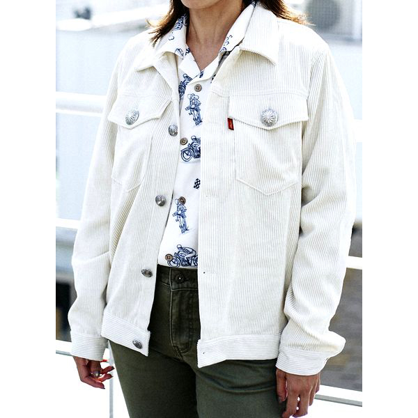 女性にもオススメのアイテムです。ユニセックス(男女兼用) ■カラー/アイボリー ■素材/ポリエステル90%、ナイロン8%、ポリウレタン2%。(コーデュロイ) ■Mサイズ /身幅53cm 着丈62cm 肩幅43cm 袖丈61cm(多少前後します) ■Lサイズ /身幅56cm 着丈64cm 肩幅45cm 袖丈62cm(多少前後します) ■Lサイズ /身幅59cm 着丈66cm 肩幅48cm 袖丈63cm(多少前後します) ※サイズは多少の誤差はご容赦ください。 ※モニターによって色の見え方が異なる場合があります。 ※商品によって柄の出方が異なる場合がございます。 |