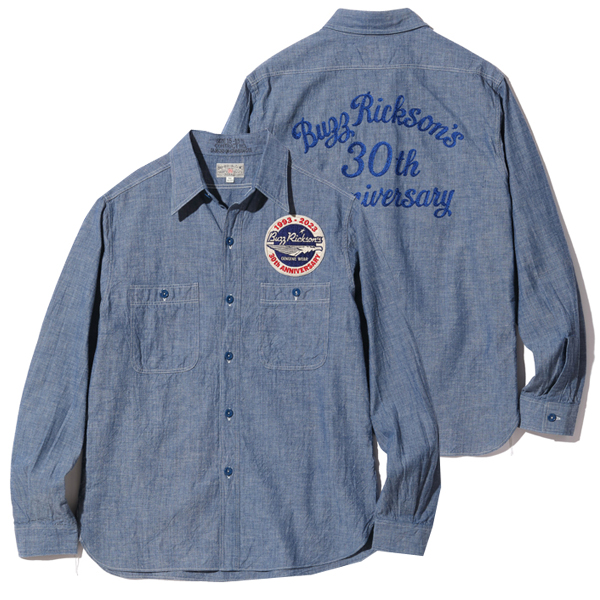 バスリクソンズ 30周年 長袖 刺繍 シャンブレー ワークシャツ BUZZ RICKSON'S BLUE CHAMBRAY WORK SHIRT