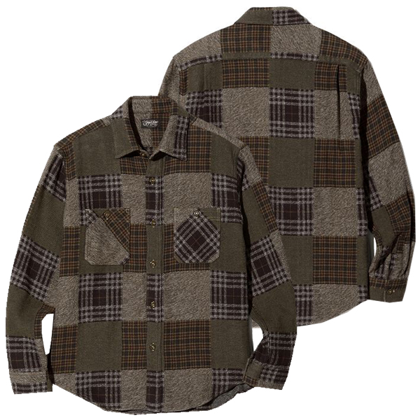 東洋エンタープライズ シュガーケーン SUGAR CANE 長袖 パッチワーク チェック ワーク シャツ ブラウン PATCH WORK CHECK WORK SHIRT