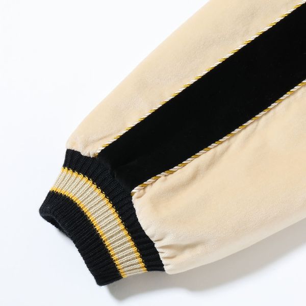 【VELVETEEN (TWO-TONE) SOUVENIR JACKET】 2色の別珍生地を使い、身頃と袖下で2トーンに切り替えたスーベニアジャケット。ヴィンテージにも実在するが、世界でまだ数着しか確認されていない希少なモデル。通常の別珍と異なり、現存する個体はどれも中綿無し。リバーシブル面はサテン生地だがキルティングステッチは入らない仕様である。 ■カラー/(119)TIGER HEAD × GOLD DRAGON ■素材表地/ コットン100% ■素材裏地/ アセテート100% ■リブ部分/ アクリル100% ■刺繍部分/ レーヨン100% ■生産国 / 中国製 ■M(中)サイズ /身幅56cm 着丈60cm 裄丈 83cm (多少前後します) ■L(大)サイズ /身幅59cm 着丈62cm 裄丈86cm (多少前後します) ■XL(特大)サイズ /62cm 着丈64cm 裄丈89cm (多少前後します) ※サイズは多少の誤差はご容赦ください。 ※素材の特性や仕上げの方法によって、各所の寸法には若干の個体差が生じます。 ※モニターによって色の見え方が異なる場合があります。 ※商品によって柄の出方が異なる場合がございます。 |