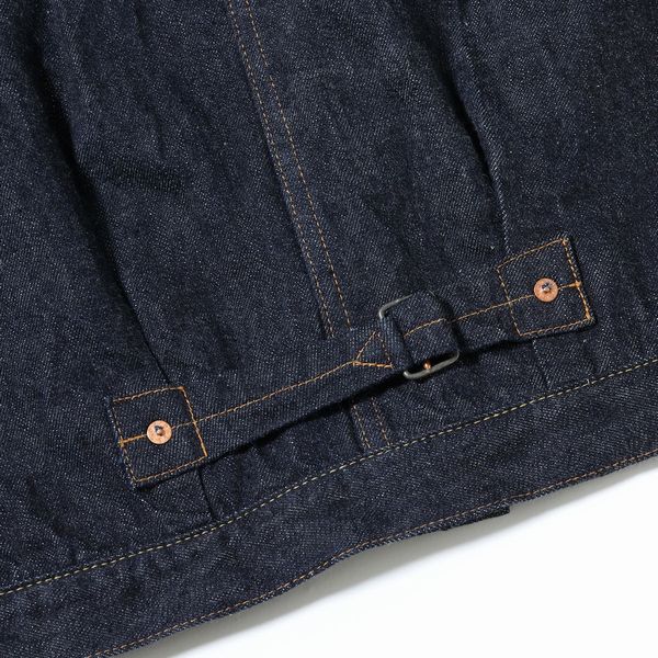 | 今回のモデルは、フロントや袖口のタックボタンが、パンツのフライ用のスモールボタンからトップ用のフルサイズに変わって間もない時代の1936年モデル・デニムブラウス。経糸7番×緯糸7番の未熟な紡績のムラ糸を使用した13.5oz.セルビッジデニムに、戦前らしいオレンジがメインのステッチワークが映えている。左胸ポケットのフラップの裏側にはライトオンスデニムを使用し、前身頃の身返し端にはセルビッジが見られる。デニムの生地幅の都合上、サイズ46以上の背中はEXTRA SIZEであるT-BACK仕様となる。 ■カラー/ノンウォッシュ(420N)/ワンウォッシュ(421A) ■素材表地/ コットン100% ■生産国/MADE IN JAPAN(日本製) 420N) NON WASH ■46サイズ /肩幅58cm 身幅64cm 着丈64cm 袖丈59.5cm (多少前後します) 421A) ONE WASH ■46サイズ /肩幅55.5cm 身幅61cm 着丈60.5cm 袖丈56.5cm (多少前後します) ※ワンウォッシュは洗い乾燥加工で縮みが発生するためサイスには個体差がございます。 ※サイズは多少の誤差はご容赦ください。 ※本作には防縮加工をしていない生機のデニム生地を使用しており、ノンウォッシュ(未洗い)の商品は洗濯後、各部の寸法に縮みが生じます。 ※モニターによって色の見え方が異なる場合があります。 ※商品によって柄の出方が異なる場合がございます。 |