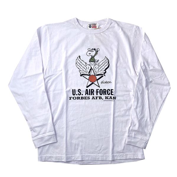 | 今回のモデルは東洋エンタープライズが手がけるブランド、バズリクソンズ BUZZ RICKSON'Sからバズリクソンズ×ピーナッツのコラボ長袖プリントTシャツ
