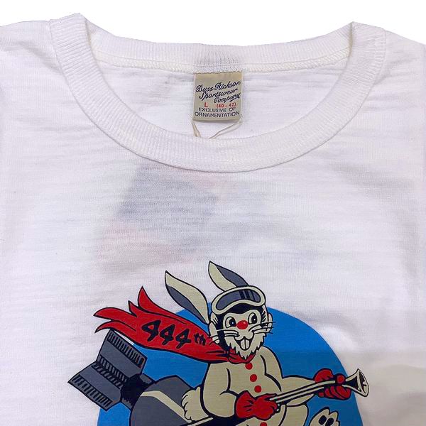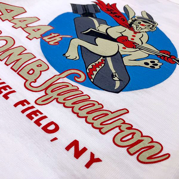| 今回のモデルは東洋エンタープライズが手がけるブランド、バズリクソンズ BUZZ RICKSON'Sから半袖プリントTシャツ “444th BOMB.SQ”